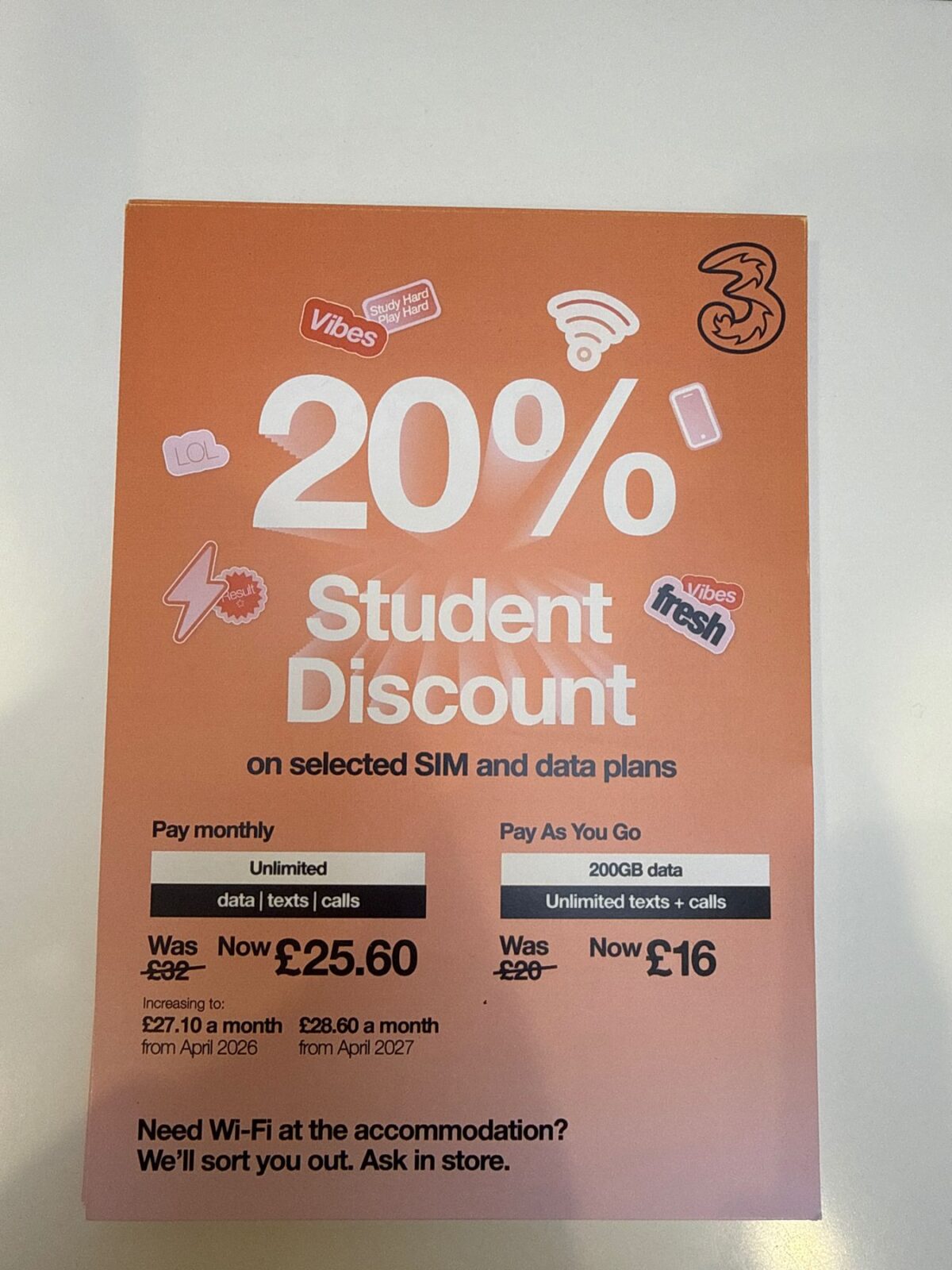 20% student discount across sims and broadband. Also refer a friend and earn £25 each per sim or £40 each per broadband.