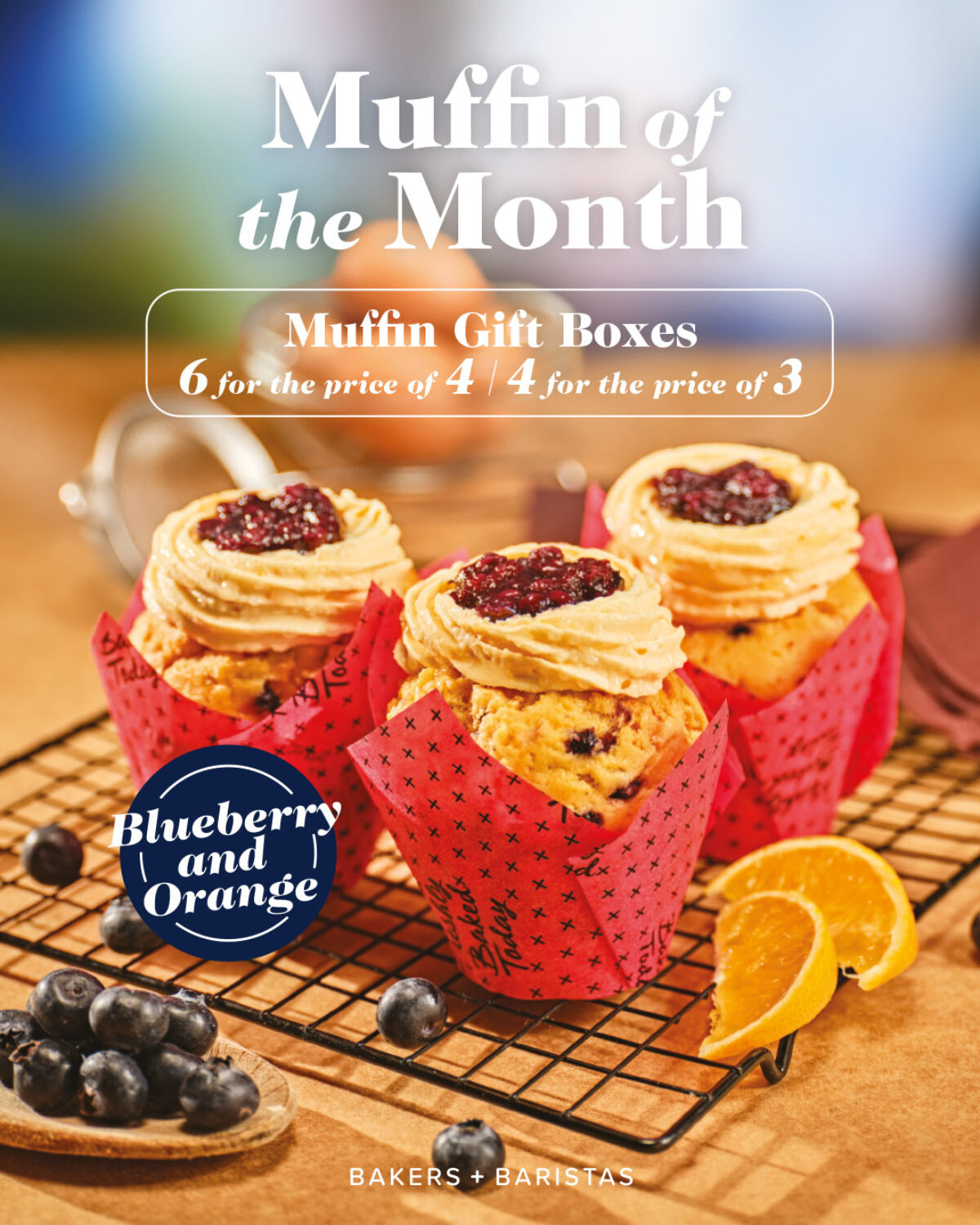 Bakers & Baristas have a tasty new, freshly baked muffin on the menu: Blueberry & Orange. Enjoy great value gift boxes such as 6 for the price of 4 and 4 for the price of 3!