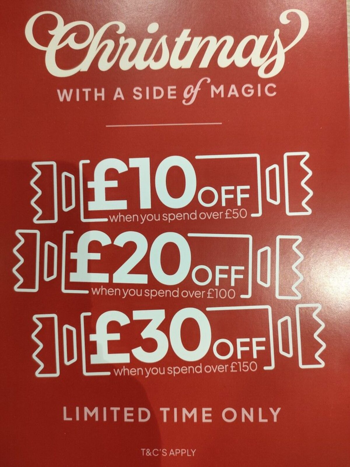 £10 OFF when you spend over £50, £20 OFF when you spend over £100, £30 OFF when you spend over £150.